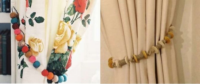 Actuellement, il existe une large gamme de matériaux pouvant être utilisés pour fabriquer des crochets de rideaux et des pompons. Ils ont des couleurs différentes, une texture inhabituelle. Pour cette raison, vous pouvez facilement réaliser un décor qui correspondra parfaitement à votre style et à vos préférences.