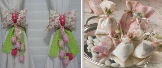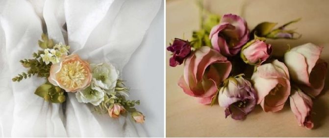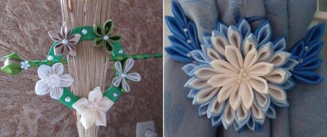 Comme les kanzashi, les crochets de rideaux en mousseiran ne diffèrent pas des autres modèles par leur design, mais par des décorations spéciales. Sur eux, de magnifiques fleurs fleurissent magnifiquement, faites par les mains d'artisans expérimentés, presque impossibles à distinguer des vraies.