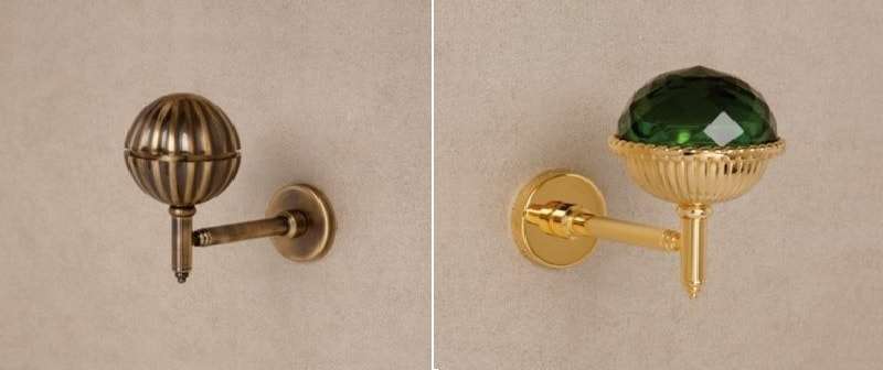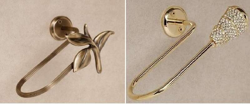 Supports originaux pour rideaux et sous forme de poignées de porte - structures fixées au mur, pour lesquelles le tissu est rentré. Ils peuvent être de forme simple, sous la forme d'une barre d'acier épaisse pliée comme un long crochet, ou ils peuvent être des œuvres d'art du design exquises.