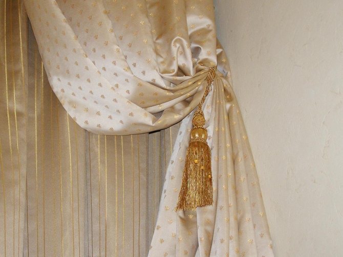 Cependant, lors du choix, faites attention à la couleur des rideaux, à la texture et à la densité du matériau. La tresse dorée ou argentée s'adapte à presque tous les tissus de rideaux coûteux.