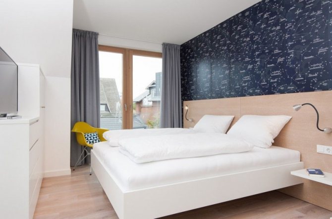- Le bleu bleuet ou le ton azur profond en combinaison avec le blanc neige créera soit un intérieur clair dans un style nautique, soit austère et sobre;