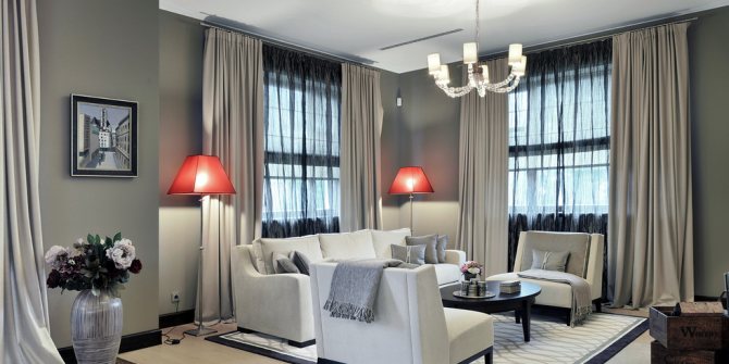 Bonnes manières: options pour décorer les fenêtres avec de longs rideaux