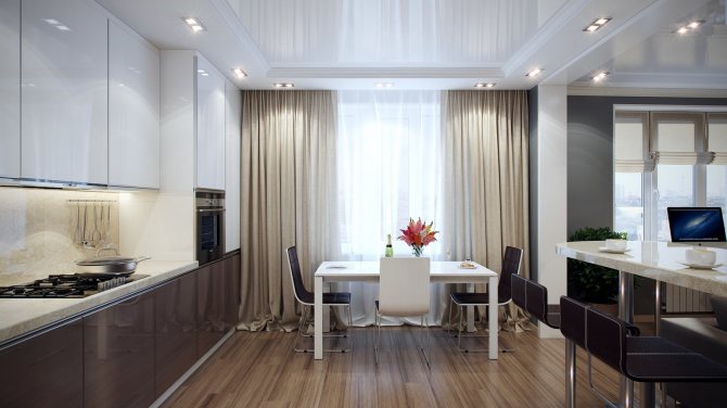Les normes de la conception soviétique dictaient que les rideaux devaient être suspendus 10 à 15 cm au-dessus de l'ouverture. Pour les femmes de Khrouchtchev, cette recommandation est toujours valable, mais si le plafond de l'appartement est supérieur à 2,5 m, alors "pousser" devrait être du plafond.