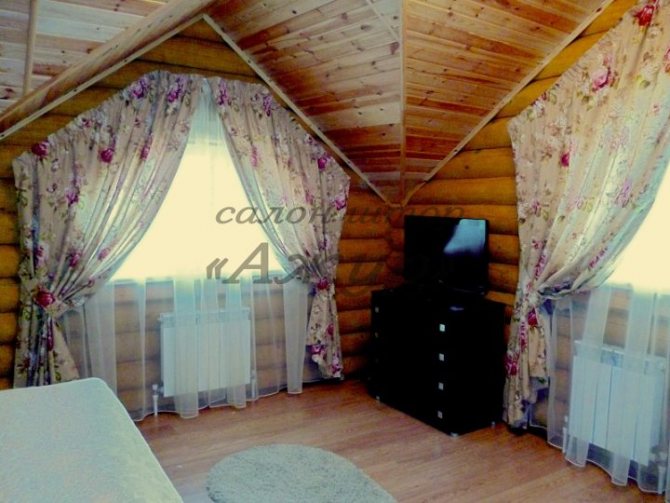 Sur les photos ci-dessus, vous pouvez voir que les rideaux des fenêtres triangulaires, en raison de l'installation spécifique, ne s'écartent pas complètement. Pour les ouvrir légèrement, il faudra tirer le tissu sur les côtés à l'aide de pinces, d'aimants décoratifs ou de la même chose que sur la barre de tresse.