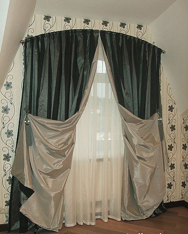 À l'extérieur, ils attirent l'attention, mais à l'intérieur, ils nécessitent la possibilité de choisir des rideaux, car leur forme dicte certaines règles pour le choix du tissu et l'installation des produits.