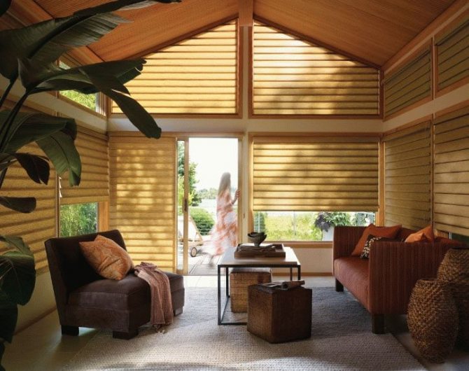 De tels stores coûteront plus cher que les rideaux classiques, mais leur fonctionnement pratique et à long terme rembourse les coûts de fabrication et d'installation.