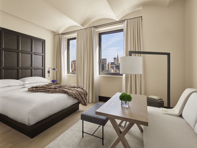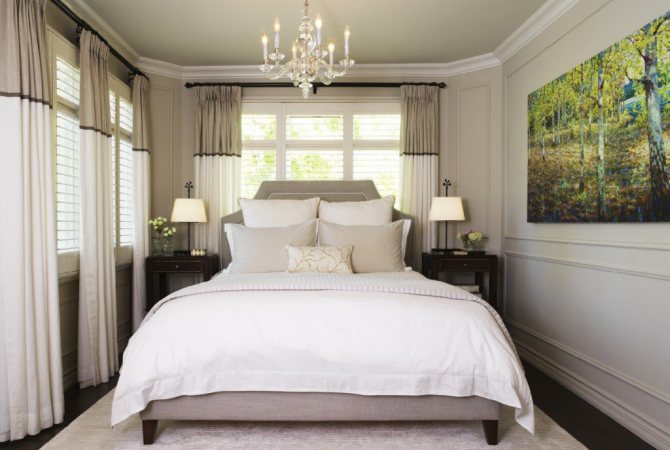 Les rideaux doivent correspondre à l'intérieur de la pièce, ils doivent donc être achetés ou commandés au stade de la finition. Mais le choix des rideaux dépend non seulement de la conception de la pièce, mais également de la hauteur des plafonds de la pièce. Pour une pièce avec des plafonds bas, des rideaux de lumière et de lumière conviennent. Des rideaux français peuvent être accrochés dans la chambre avec un espace de travail. Dans les grandes pièces avec de hauts plafonds, les longs rideaux de toutes les couleurs sont élégants. La couleur des rideaux doit être assortie à la couleur du meuble afin que l'intérieur soit intéressant et concis. Les teintes neutres (sable, crème, beige, etc.) conviennent à tout projet de design et créent un environnement calme et confortable. Les rideaux de la chambre peuvent ne pas paraître solides ou élégants, car cette pièce n'est pas cérémonielle. Pour certains styles, il est permis de remplacer les rideaux par des stores spectaculaires.