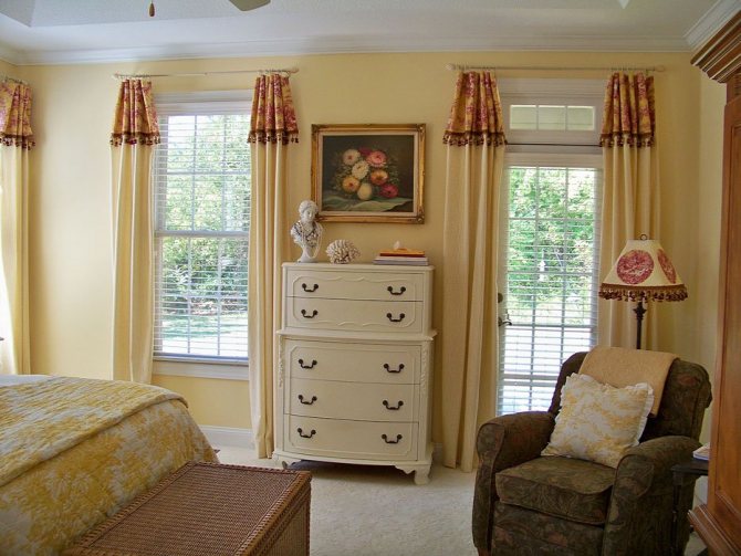 Les fenêtres peuvent être situées dans le même mur, des murs adjacents ou en face les unes des autres. En outre, la pièce peut être si petite qu'il devient impossible de disposer les meubles avec succès.Ici les textiles viennent à la rescousse, qui peuvent être utilisés pour draper les murs et les fenêtres.