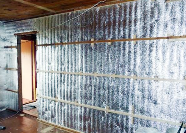 • Il existe plusieurs options pour la fixation de l'isolant revêtu d'une feuille, parmi lesquelles la méthode de fixation des toiles avec des lattes de bois est le plus souvent utilisée.