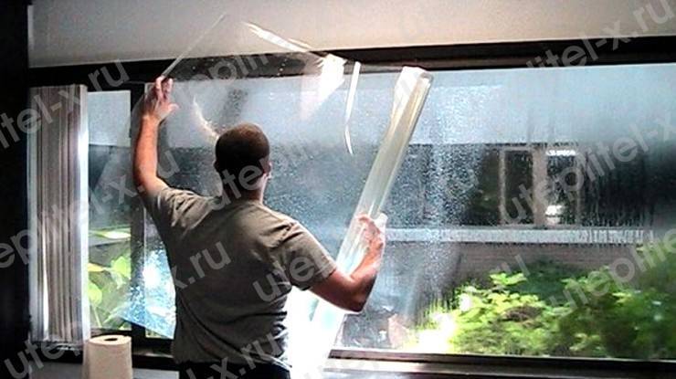 Le film autocollant est un peu similaire à celui utilisé pour protéger les écrans des téléphones portables et des tablettes PC. Il est collé de la même manière. La procédure est la suivante - décollez soigneusement le support, placez la couche principale sur la fenêtre, continuez à décoller le support, collez soigneusement toute la couche principale