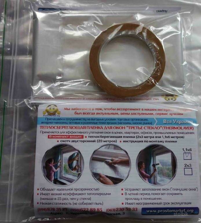 Le film thermorétractable économiseur de chaleur est intéressant pour son originalité. Il n'est pas collé à la fenêtre, mais au cadre de la fenêtre à l'aide de ruban adhésif double face. Pour cette raison, un espace d'air supplémentaire est formé entre celui-ci et le verre - comme vous le savez, l'air est un bon isolant thermique, aidant à retenir la chaleur.