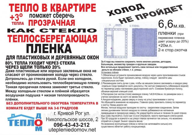 Important! Oui, vous pouvez acheter immédiatement des fenêtres à triple vitrage, économes en énergie, conçues pour les fortes gelées. Mais le film thermique coûtera certainement moins cher.