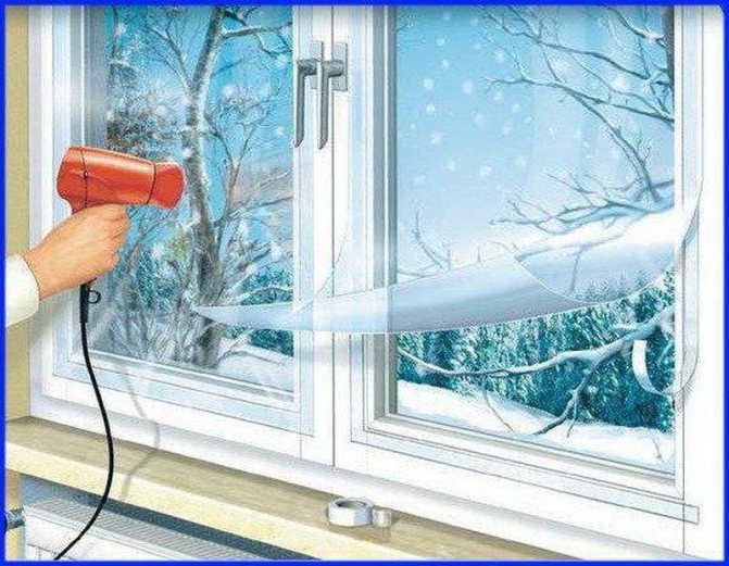 Avant de chauffer avec un sèche-cheveux, le film thermorétractable économiseur de chaleur semble très peu présentable, cependant, cela lui permet d'être placé sur le cadre de la fenêtre dans la meilleure qualité et correctement.