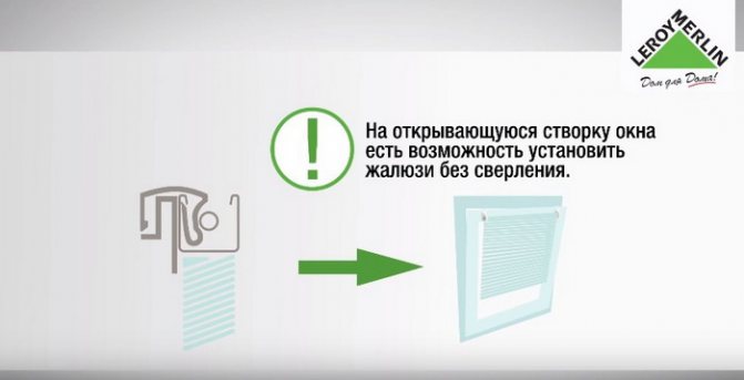 Si le châssis auquel les stores sont attachés s'ouvre, dans ce cas, le cadre n'est pas percé, fixant les stores avec un ruban spécial - auto-adhésif ou clips. Cette méthode est également optimale pour les nouvelles fenêtres en plastique, qui sont toujours couvertes par la garantie du fabricant.