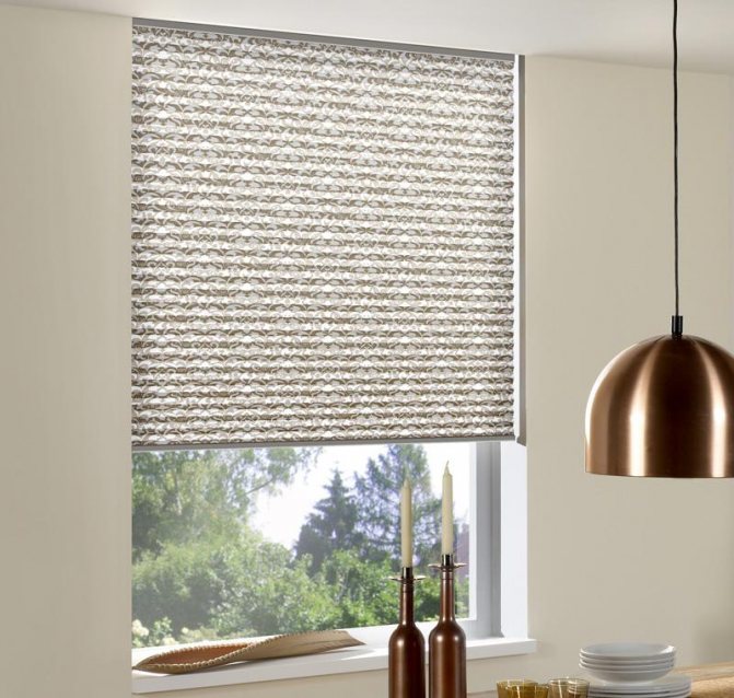 Ce type de stores peut être attribué aux derniers développements de conception: ils sont en tissu traité avec un composé spécial et ondulé. Ils peuvent être à la fois horizontaux et verticaux, contrôlés par un cordon ou une chaîne, se distinguent par leur légèreté et une variété de couleurs. Ils peuvent être montés à la fois sur le cadre et à l'intérieur de l'ouverture de la fenêtre.