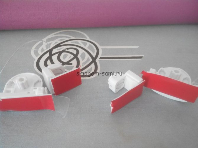 Installation du store enrouleur MINI - Collez les supports sur les bandes, en appuyant fermement les pièces sur le profil.