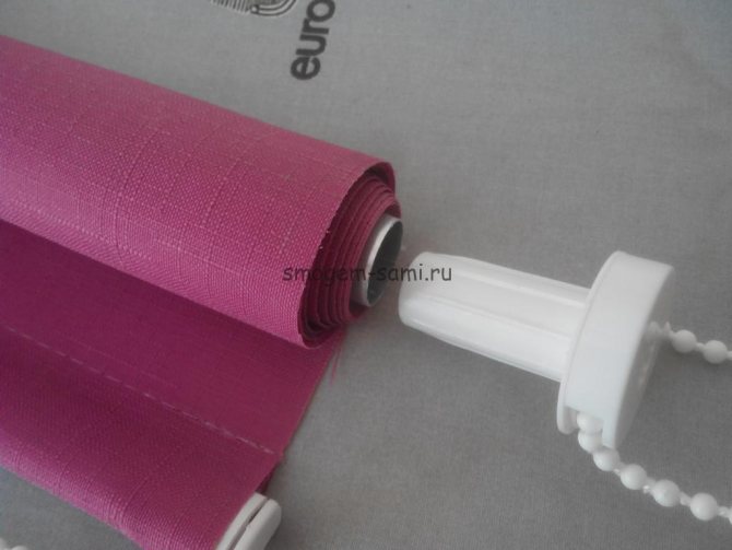 - Assemblez le rouleau: insérez le mécanisme à chaîne dans l'arbre à une extrémité et un bouchon à l'autre, fixez les supports à l'arbre.