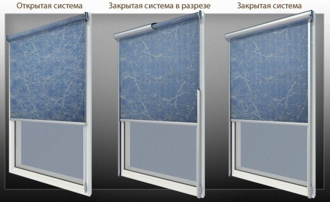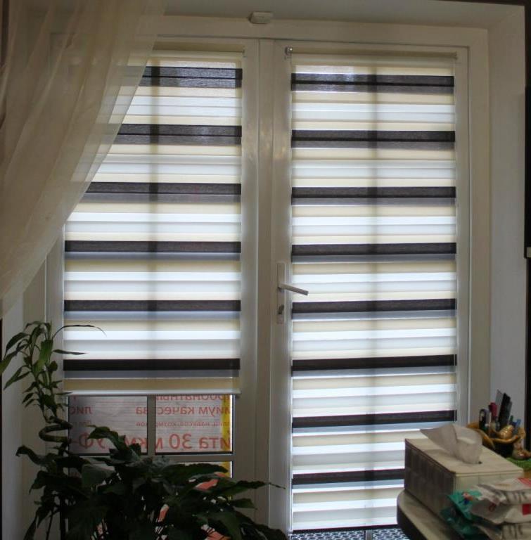 Les lamelles en plastique et en aluminium sont pliées en haut dans une boîte à cassette (type fermé), les lamelles en tissu (ouvertes) sont vissées sur un rouleau. Une variété de couleurs vous permet de choisir des modèles qui correspondent à n'importe quelle solution de conception. Le tissu à partir duquel les toiles sont formées est subdivisé par transmission lumineuse. Ces modèles peuvent être contrôlés à l'aide d'un cordon et d'une poignée de canne ou d'un entraînement électrique.