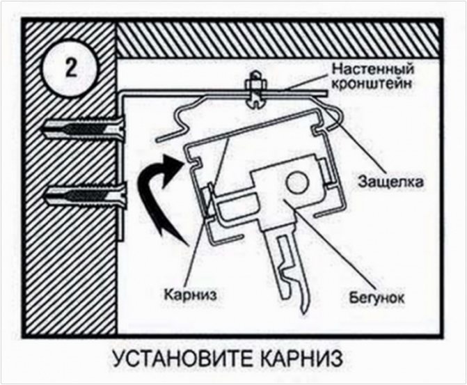 - Après cela, la corniche est fixée sur des loquets spéciaux sur le support.