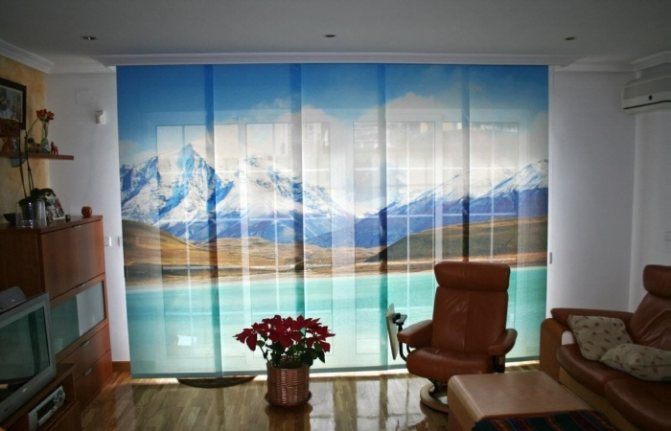 - Stores photo. Un tel mécanisme comporte des lamelles sur lesquelles une certaine image est appliquée. Le propriétaire de l'appartement peut choisir n'importe quel dessin et le placer sur la taille réelle de la fenêtre.