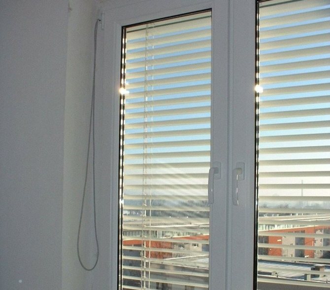 Des stores inter-cadres horizontaux sont placés entre les volets et économisent de l'espace au maximum. Habituellement, ils sont blancs ou incolores et ne portent pas de charge décorative à l'intérieur. Une telle disposition des systèmes inter-cadres est possible pour les anciennes structures de fenêtres en bois et européennes. La condition principale est que la distance entre les verres soit d'au moins 30 mm. Dans ce cas, la commande est effectuée, par conséquent, pour monter et descendre les lamelles et régler leur angle d'inclinaison, il n'est pas nécessaire d'ouvrir le cadre.