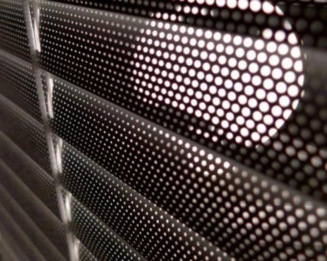- Perforé. Les lattes de ces modèles comportent de nombreux petits trous ronds, à travers lesquels même s'ils sont complètement fermés, une partie du flux lumineux passe, créant une atmosphère mystérieuse et chaleureuse dans la pièce.