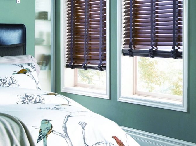 Les tout premiers stores horizontaux étaient en bois, et ils ont également reçu le deuxième nom - "Venetian". Ils se composent également de nombreuses planches reliées à des cordes ou des rubans textiles, avec lesquelles vous pouvez collecter les planches en haut de la fenêtre ou les tourner en biais, permettant aux rayons du soleil d'entrer dans la pièce. Leurs tailles peuvent être différentes, mais en moyenne, leur largeur varie de 3 à 12 cm.