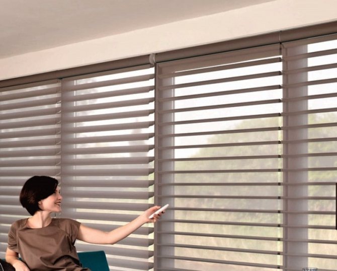 Avec la commande automatique, le mécanisme est entraîné par un moteur électrique, qui est activé à l'aide d'une télécommande. Bien sûr, c'est très pratique, mais aussi coûteux et n'a pas de sens dans tous les cas. Naturellement, si vous installez des stores dans une petite cuisine ou une salle de bain avec une fenêtre standard, vous ne devriez pas dépenser d'argent pour un mécanisme de commande électronique. Mais parfois, il est difficile de s'en passer.