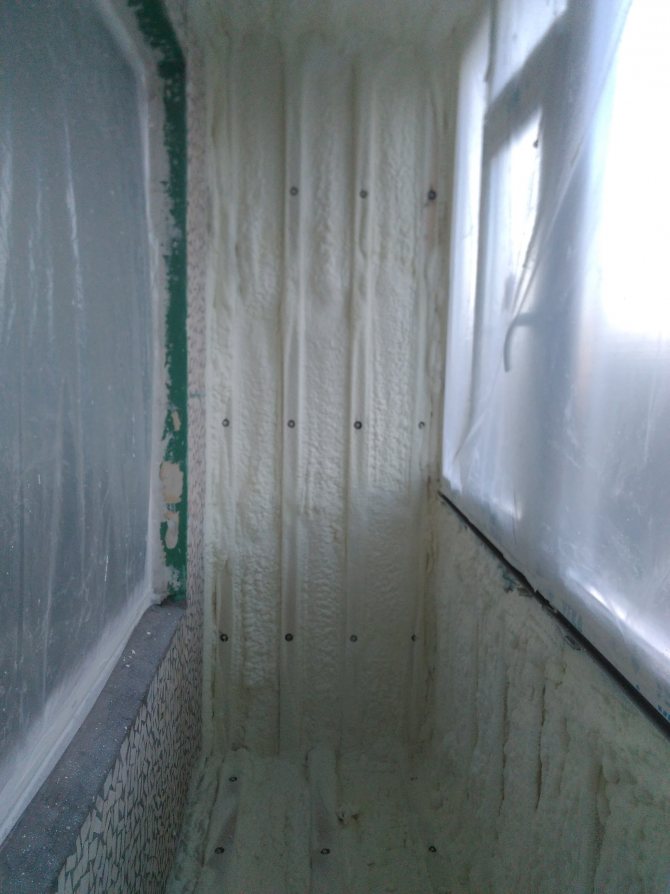 L'isolation des murs sur une loggia ou un balcon lors de l'utilisation de laine minérale ou de mousse commence par l'installation du cadre par un pas des crémaillères le long de la largeur de l'isolation. En tant que cadre, vous pouvez utiliser des blocs de bois ou des guides en plaques de plâtre. Le matériau en laine minérale est placé dans une entretoise avec une légère compression, après quoi un pare-vapeur est monté sur les racks avec un chevauchement et des coutures collées. Lors de l'utilisation de mousse ou d'EPS, en cas d'adhérence de matériau lâche sur les poteaux, il est nécessaire de combler les fissures avec de la mousse de polyuréthane. Polyfoam a besoin d'un pare-vapeur supplémentaire. La mousse de polystyrène extrudé est étanche à la vapeur, si elle est montée entre les rails en plaques de plâtre, aucun pare-vapeur n'est requis.