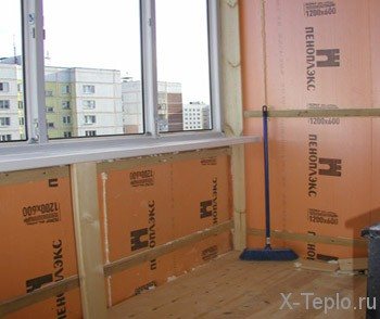 Penoplex est un analogue plus moderne de la mousse. En conséquence, l'isolation de la loggia avec son utilisation est réalisée en utilisant une technologie similaire. Penoplex est appelé mousse de polystyrène extrudé. Si vous rencontrez les abréviations XPS ou EPS, sachez que nous parlons de Penoplex. Sa principale différence par rapport à la mousse est une densité plus élevée, ce qui signifie une plus grande rigidité et une plus grande résistance aux dommages dus aux contraintes mécaniques. A titre de comparaison: si la mousse pour les travaux d'isolation thermique est choisie avec une densité de 10-25 kg / m2. cm, puis penoplex - 35-45 kg / cm2. La rigidité accrue de ce matériau en fait un isolant thermique idéal non seulement pour les murs, mais également pour le sol du balcon. Le revêtement du panneau OSB peut être posé directement sur le penoplex, sans monter le décalage.
