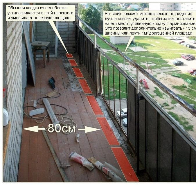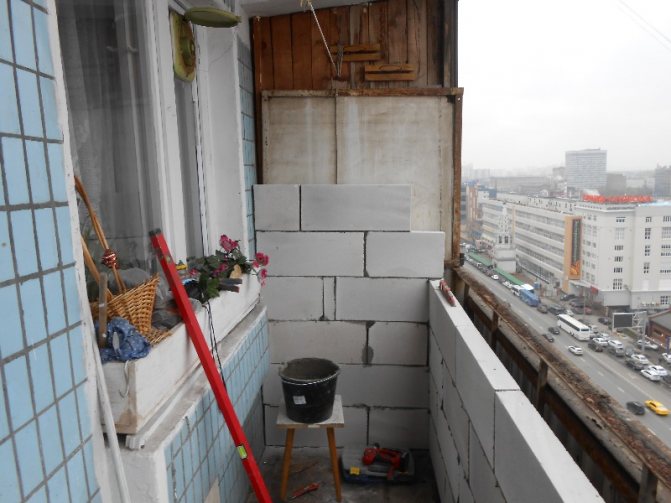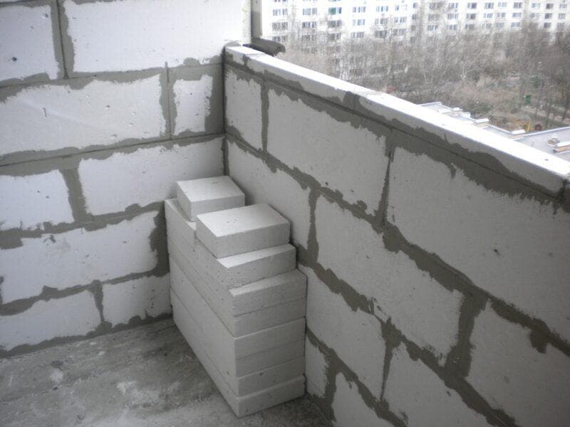 Avant de choisir ce matériau particulier pour la construction d'une cloison de balcon, vous devez évaluer particulièrement attentivement l'état de la maison. Comparez: le poids de 1 m². les murs en briques creuses les plus légères pèsent plus de 160 kg et le poids de la même section en blocs de mousse peut atteindre 70 kg! Il est logique de disposer un mur de briques plutôt lourd et coûteux dans des situations très rares. Dans la plupart des cas, l'utilisation de blocs légers de silicate de gaz est suffisante.