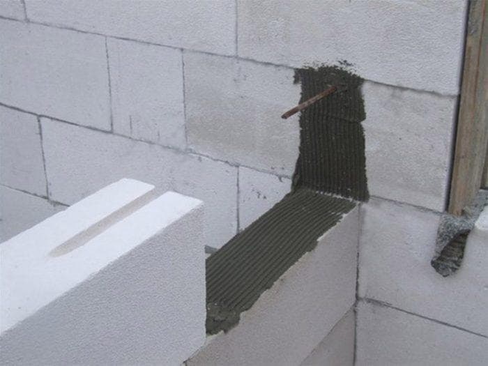 IMPORTANT! Pour que la cloison des blocs de mousse ne s'effondre pas après le séchage de la colle, elle doit être reliée à la surface du mur porteur.