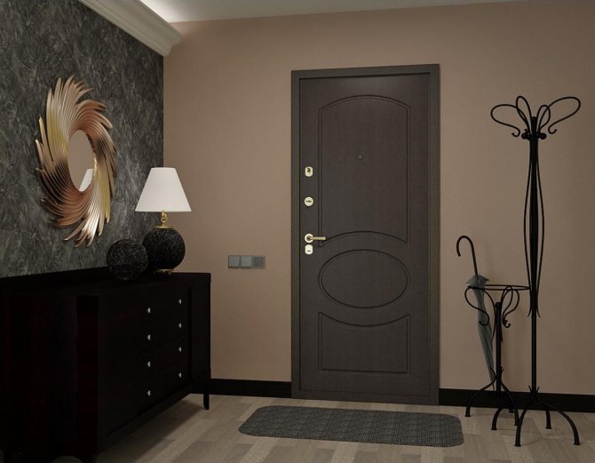 Il est particulièrement utile lorsque vous utilisez divers éléments décoratifs forgés, des inserts de miroir ou de verre, ainsi que lorsque vous faites face à la structure d'entrée avec des panneaux en bois massif ou en MDF.