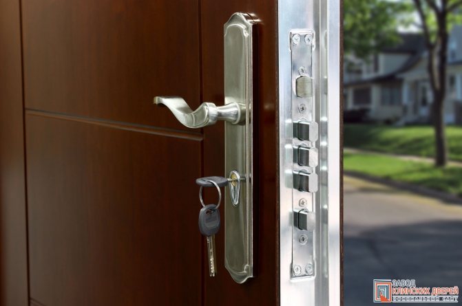 - Dispositifs de verrouillage et accessoires divers. Dans la plupart des cas, l'acier et ses alliages avec d'autres métaux sont également utilisés pour la production de ces composants, qui sont nécessairement présents dans chaque structure d'entrée. En conséquence, le poids des ferrures et des serrures peut être de 8 voire 10 kg pour certains modèles, ce qui représente une part importante du poids total du produit;