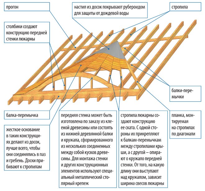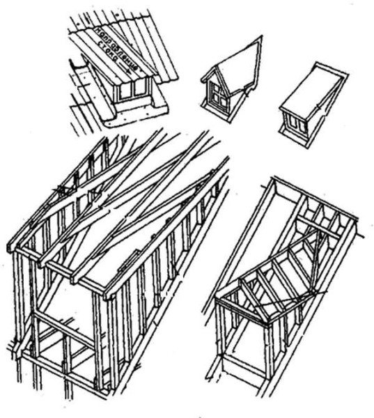 L'emplacement des fenêtres verticales dans la partie inférieure de la pièce empêche les fuites de chaleur. "Birdhouse" vous permet d'augmenter légèrement la surface de la pièce supérieure, mais, en revanche, complique le système de chevrons et peut conduire à d'éventuelles fuites aux points de fixation au toit principal.