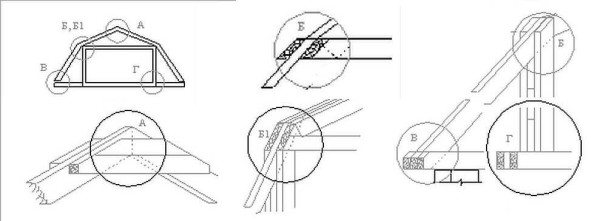 Lors de l'installation du système de chevrons, des questions peuvent se poser concernant l'assemblage des nœuds - l'intersection et la connexion de plusieurs éléments structurels. Sur la photo, vous pouvez voir des dessins de connexions clés.