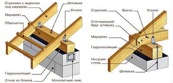 Plusieurs options pour attacher des chevrons au Mauerlat