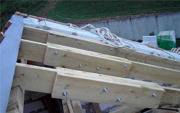 La deuxième option consiste à connecter les chevrons en couches latérales et le triangle supérieur. Les boulons sont utilisés pour une fixation plus sûre.
