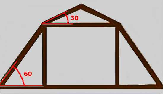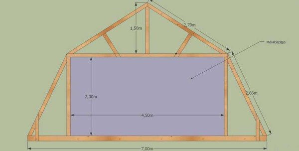 Étant donné que le dispositif d'un toit cassé mansardé ne prévoit pas la présence d'une crête, une barre est emballée pour le serrage au milieu, à laquelle les pentes sont attachées, fixant le triangle dans la position requise.