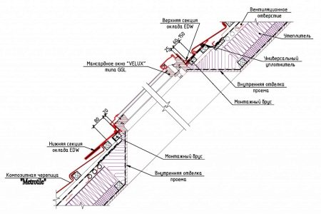 - solin de protection isolant - est chargé de sceller l'espace entre la toiture et le cadre de la fenêtre; le profil de la partie inférieure est choisi en tenant compte du relief de la surface du toit;