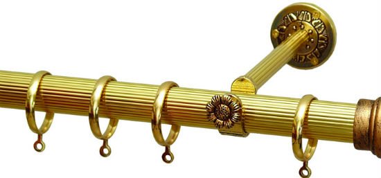 Pour les rideaux massifs et lourds, il est préférable d'acheter des corniches D = 40-50 mm, ou des corniches exclusives - D = 75 mm, elles mesurent jusqu'à 4 m de long, elles sont plus chères en prix, mais les avantages de tels modèles sont solidité et esthétique.