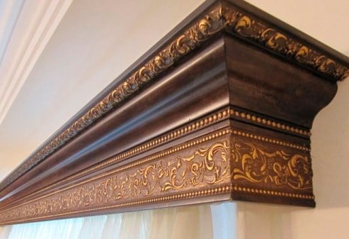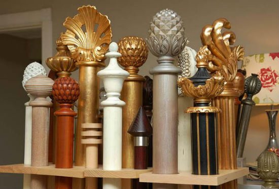 Les modèles en bois, vernis ou peints, sont assez massifs, ils conviennent donc aux rideaux denses et lourds. Vous pouvez trouver un design complété par des éléments décoratifs. Ces produits sont chers, mais durables, ils sont donc achetés pour les salons décorés dans un style classique avec des meubles en bois naturel.
