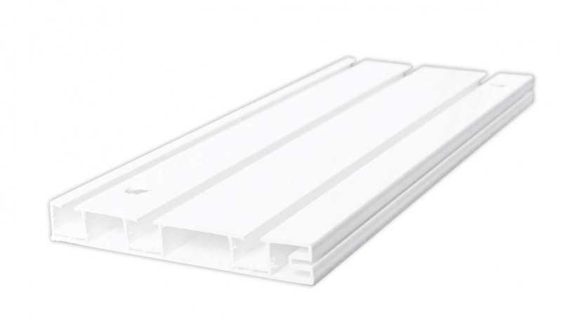 La longueur maximale d'un pneu en plastique est de 4 m. Les corniches à deux rangées sont produites avec une largeur de 8,0 cm, celles à trois rangées - 8,7 cm, L = 150, 180, 210, 250, 280, 300, 320, 340, 360, 380 cm.