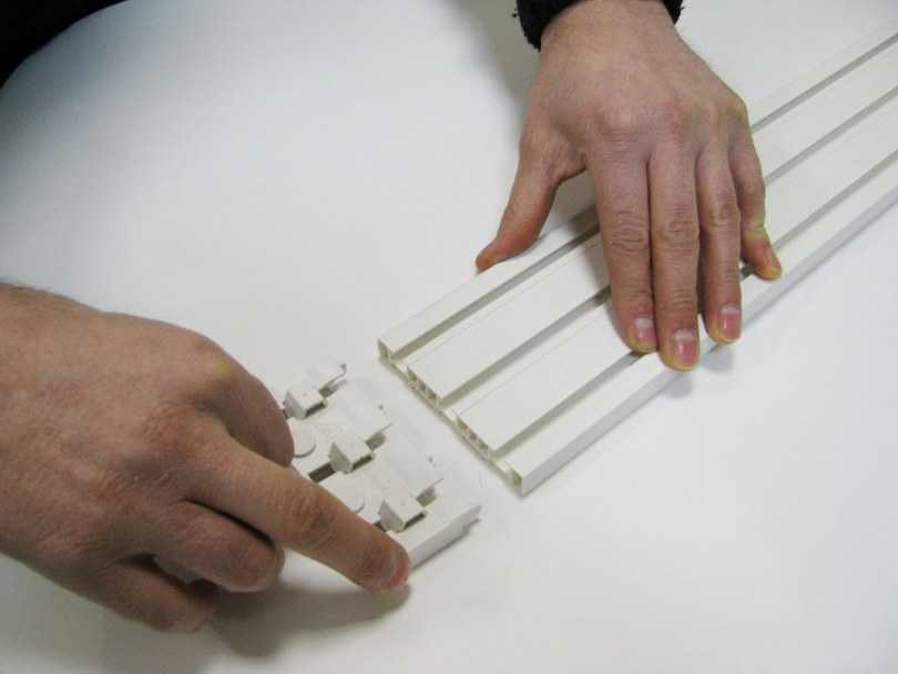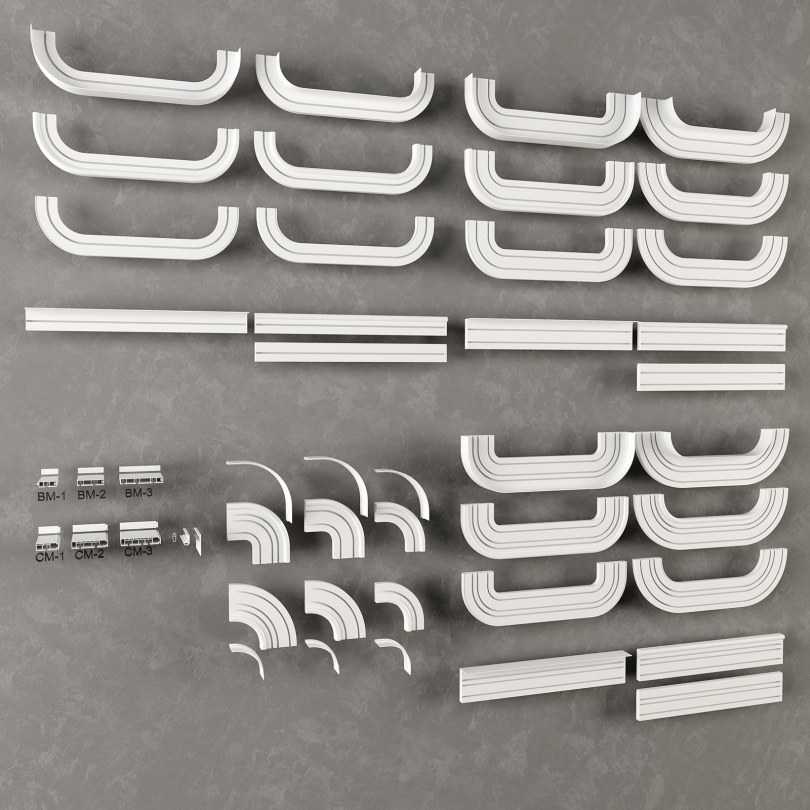 - La corniche en plastique cache complètement les crochets, anneaux et autres éléments de fixation dans la profondeur des rainures.