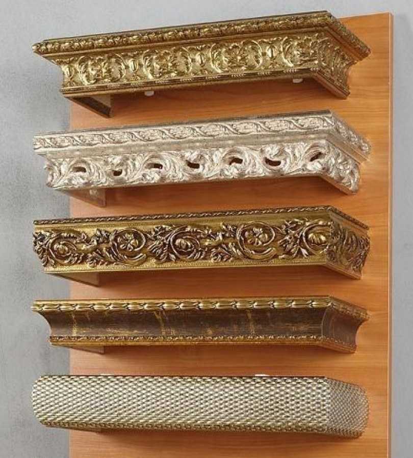 Lors de l'achat d'une baguette sur le site, vous pouvez choisir indépendamment le remplissage, l'emballage, la couleur, la taille (tout cela déterminera le coût du produit fini). Un ensemble complet avec des coudes semble plus net qu'une simple corniche droite, donc si les finances le permettent, vous devriez choisir uniquement cette option.