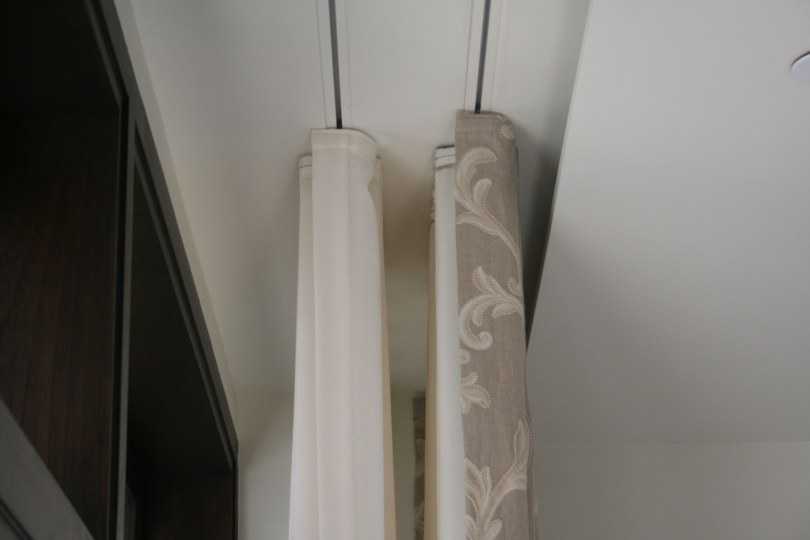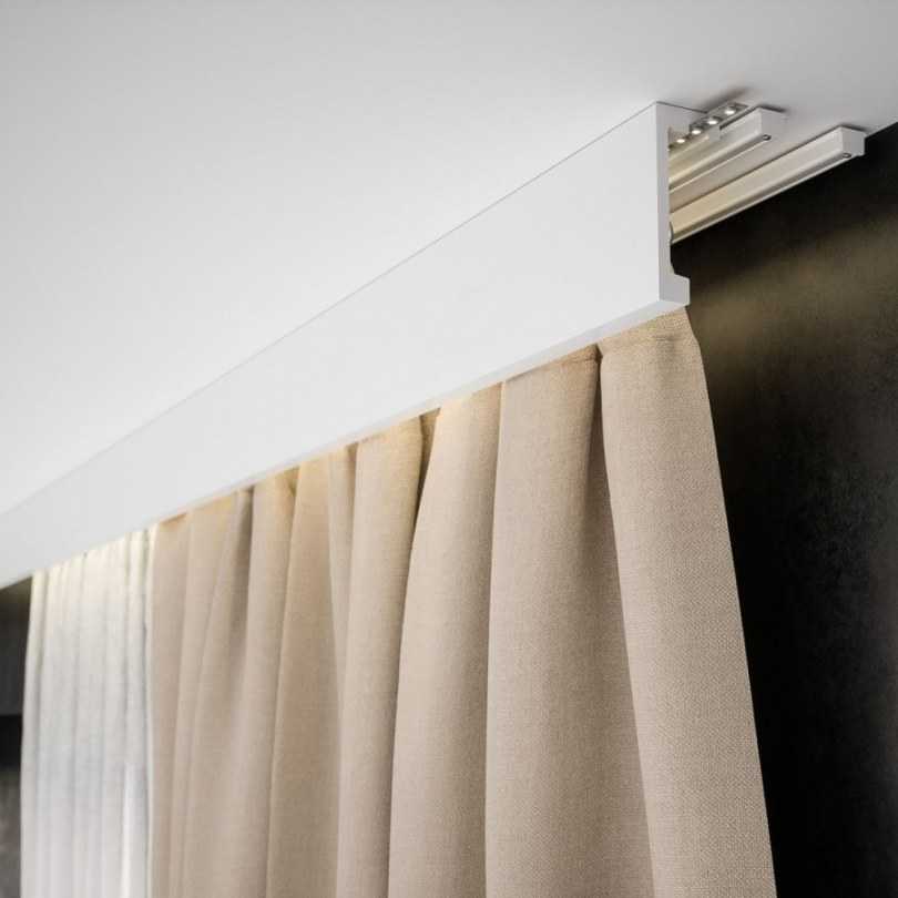 De plus, la largeur du rail de rideau au plafond dépend du nombre de rangées sur lesquelles les rideaux peuvent être placés. Les concepteurs modernes utilisent souvent ces conceptions pour l'éclairage intérieur. Il est également possible de fabriquer des systèmes à entraînement électrique.