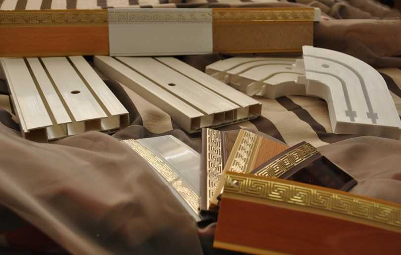 Les baguettes peuvent être installées au mur et au plafond. Ils sont toujours décorés d'une large bande avant, qui est faite de différents matériaux, mais principalement en plastique. Le seul inconvénient de cet accessoire est son accent stylistique étroit.
