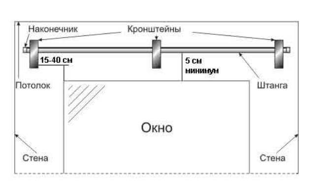 Si une fenêtre avec un large rebord ou un système de chauffage longe un plan, faites attention à la longueur du support, de manière optimale du mur à l'intérieur de la corniche 10-15 cm