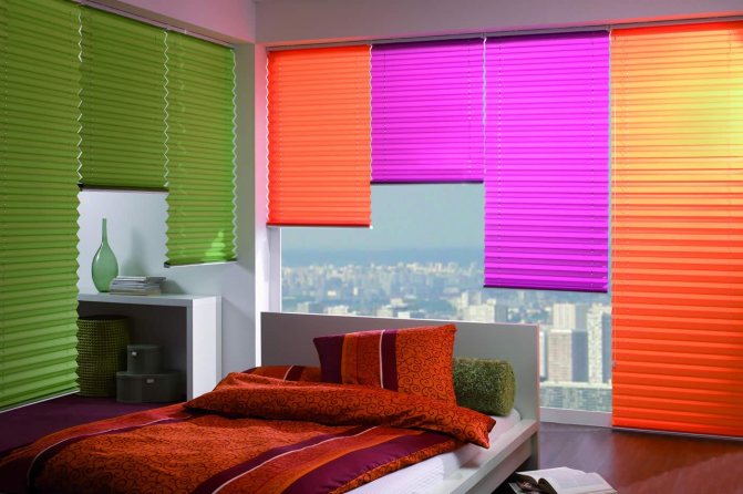 Pendant de nombreuses années, les stores ont été considérés comme une option de bureau, notamment en raison du manque d'un très grand choix de couleurs dans l'assortiment. Désormais, la demande de stores brillants est pleinement satisfaite. Parmi les lattes verticales en tissu, vous pouvez trouver des rouges vifs, des jaunes, des bleus, des verts, du bordeaux et du vert clair, ainsi que de nombreuses autres couleurs qui créeront une bonne ambiance dans la pièce.