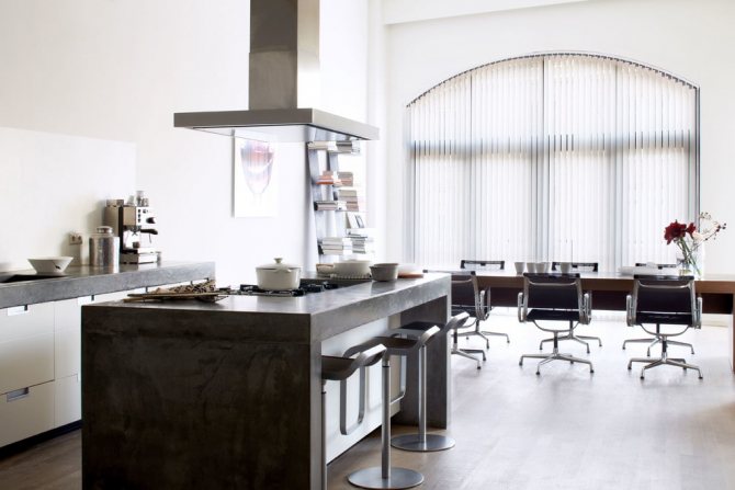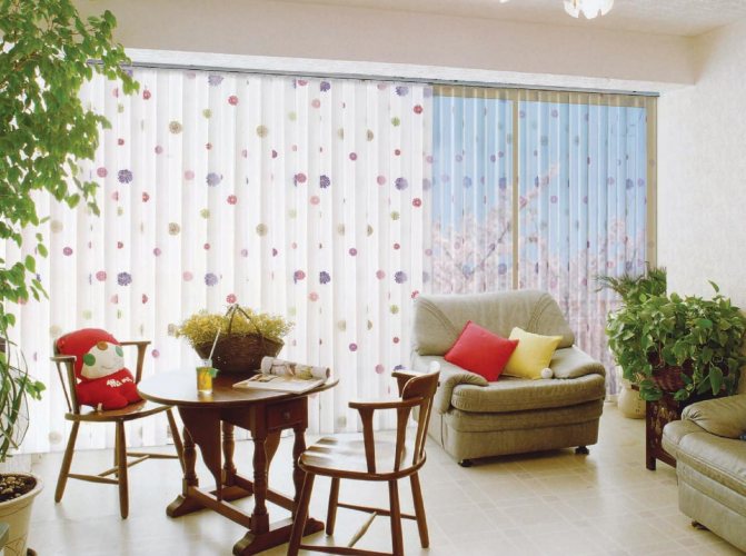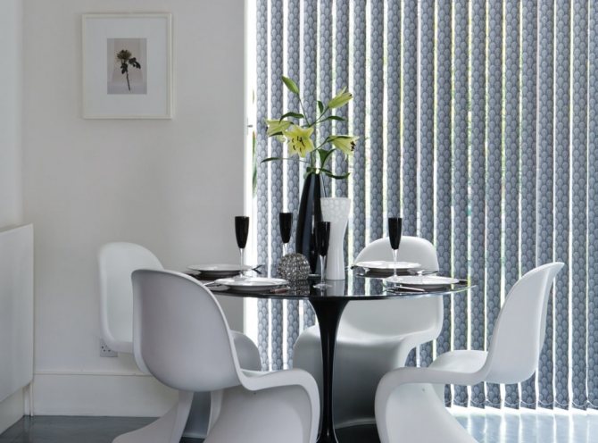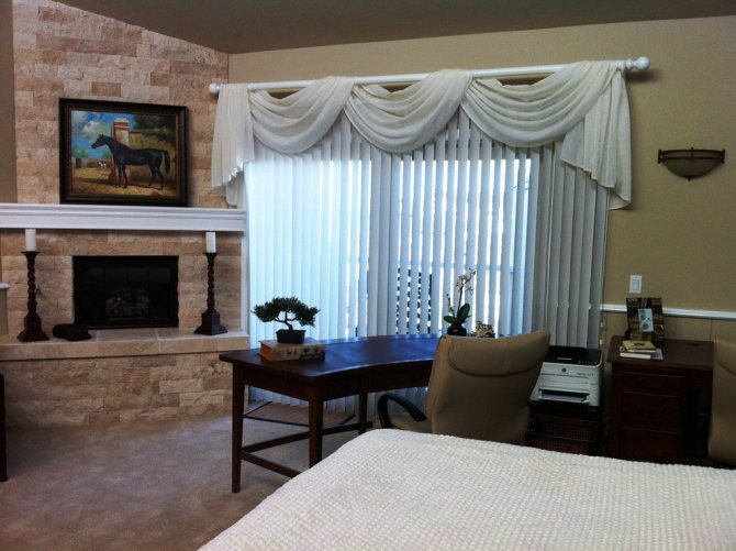 Les conceptions verticales sont magnifiques avec des rideaux d'air et des lambrequins. Avec leur aide, des cloisons intérieures sont facilement créées, vous permettant de zoner l'espace.